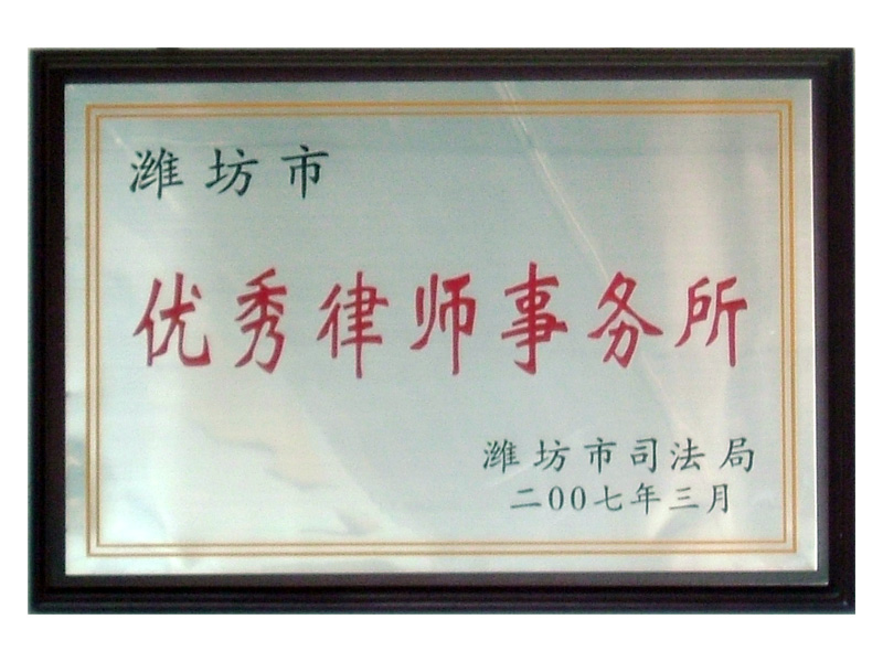 ★2007年3月衡明律所被濰坊市司法局、濰坊市律師協(xié)會評為“濰坊市優(yōu)秀律師事務(wù)所”;