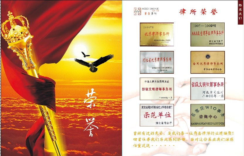 河北鼎岳律師事務(wù)所榮譽 聯(lián)系電話:89684685、13803212873