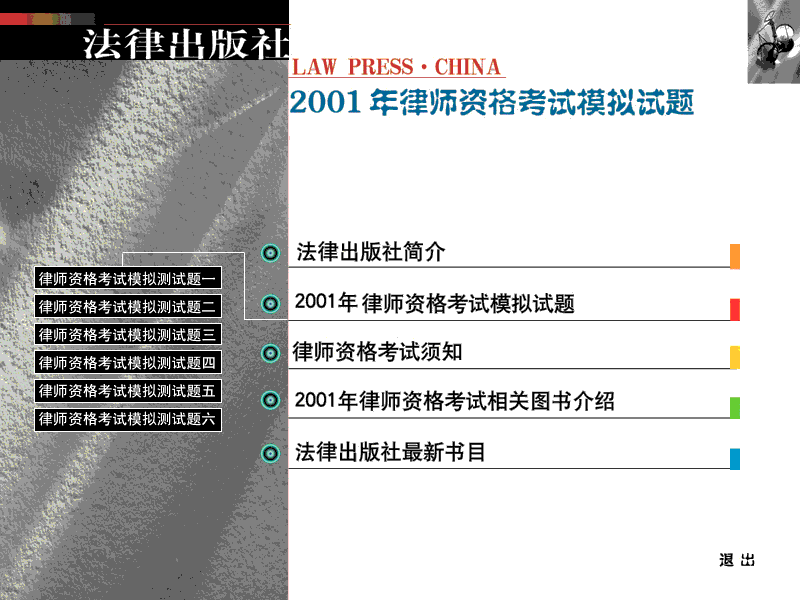 2001年全國律師資格考試指定用書全套8本由法律出版社和中國政法大學(xué)出版社出版。